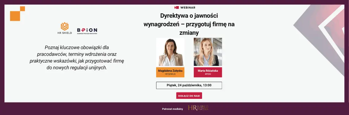 Serdecznie zapraszamy na webinar objęty honorowym patronatem redakcji HR Business Partner: „Dyrektywa o jawności wynagrodzeń – przygotuj firmę na zmiany”