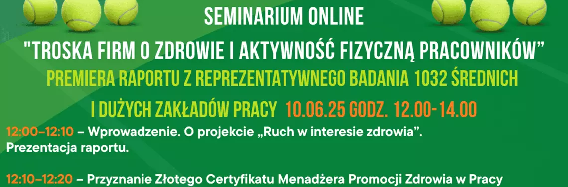 Czego dotyczy wydarzenie? Podczas seminarium zostanie publicznie przedstawiony raport „Ruch w interesie zdrowia. Promocja zdrowia i aktywności fizycznej w zakładach pracy w Polsce” oraz omówione jego wyniki. Raport prezentuje wyniki badania przeprowadzonego w październiku i listopadzie 2024 r. na ogólnopolskiej, reprezentatywnej próbie 1032 średnich i dużych zakładów pracy (50+ pracowników). Badanie miało na celu poznanie realnych działań firm w obszarze promocji zdrowia i aktywności fizycznej pracowników, ich skali, jakości, barier oraz efektów. Prezentowane ustalenia uzupełnione są komentarzami zaproszonych ekspertek i ekspertów, reprezentujących zakłady pracy zaangażowane w promocję zdrowia i aktywności fizycznej swojego personelu, a także dostawców usług z tego obszaru przeznaczonych dla zakładów pracy. Badanie oraz raport są elementem projektu „Ruch w interesie zdrowia”, którego celem jest wsparcie zakładów pracy w efektywnej promocji zdrowej aktywności fizycznej. Więcej informacji nt. projektu można znaleźć tutaj.
