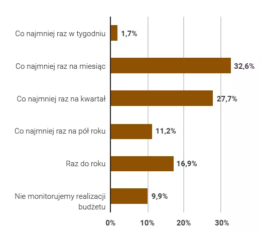 HR pokazuje, że najczęściej firmy monitorują budżet co najmniej raz w miesiącu bądź kwartale.