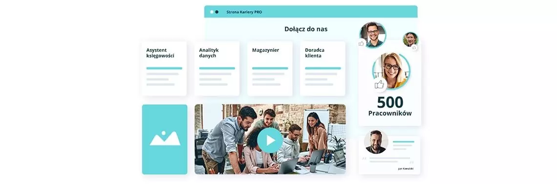 Spójrzmy prawdzie w oczy: w ferworze codziennych zajęć i często wobec nacisków na prowadzenie szybkich procesów rekrutacyjnych, nie zawsze jest czas, by stroną kariery się zajmować. Nie wspominając już o procesie tworzenia jej od zera, który wymaga dużych nakładów czasowych i finansowych (stworzenie strony przez agencję marketingową to koszt kilkunastu-kilkudziesięciu tysięcy złotych). W takiej sytuacji, by podołać codziennym obowiązkom związanym z pozyskiwaniem kandydatów, warto skorzystać z prostych narzędzi do samodzielnego przygotowania strony kariery. Umożliwiają one „skomponowanie” strony z gotowych już bloków, w których można umieścić firmowe zdjęcia, treści, oferty pracy i wszystkie dane ważne dla kandydatów.