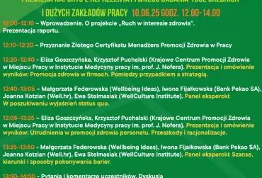 Zapraszamy na bezpłatne seminarium online organizowane przez Krajowe Centrum Promocji Zdrowia w Miejscu Pracy Instytutu Medycyny Pracy im. prof. Nofera „Troska firm o zdrowie i aktywność fizyczną pracowników. Premiera raportu z reprezentatywnego badania 1032 średnich i dużych zakładów pracy” .