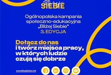 „Bliżej Siebie” to ogólnopolska kampania społeczno-edukacyjna na rzecz zdrowia psychicznego i przyjaznej kultury pracy. Pomysłodawcą i organizatorem kampanii jest Grupa Artemis, które realizuje ją od 2023 roku. Na okres kwiecień-czerwiec tego roku zaplanowana jest trzecia edycja kampanii, której celem jest zwiększanie świadomości konieczności dbania o kondycję psychiczną w środowisku pracy oraz promowanie nowoczesnego przywództwa opartego na zrozumieniu potrzeb ludzi.